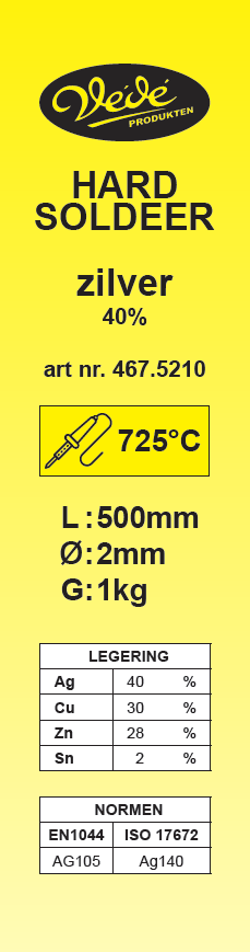 Laagst smeltende cadmiumvrije hardsoldeer met een universele toepassing op staal, koper, nikkel en hun legeringen. Vindt veel toepassing in warmtewisselaars.