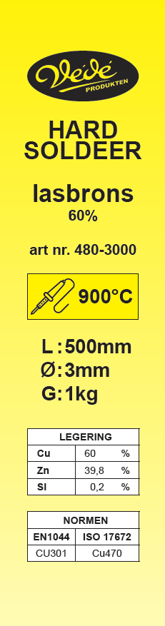 Hardsoldeer lasbrons staaf 500x3mm Cu60Zn 1kg